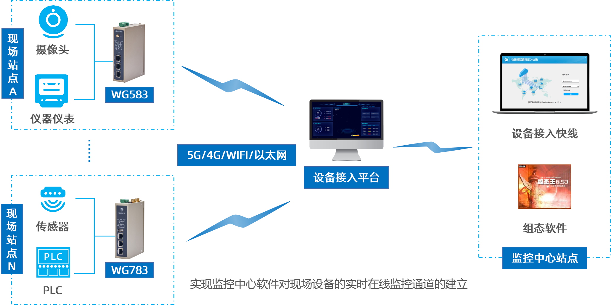 物通博聯(lián)·設(shè)備遠程接入云平臺是一款針對分布式設(shè)備數(shù)據(jù)實時監(jiān)測的快速接入平臺,采用SAAS云服務(wù)方式為工業(yè)現(xiàn)場的各種工業(yè)設(shè)備的數(shù)據(jù)互通互聯(lián)建立實時在線的數(shù)據(jù)通道。