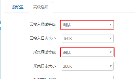 日志設(shè)置路徑:網(wǎng)關(guān)---云服務(wù)中心---云接入調(diào)試等級與采集調(diào)試等級.為了保證網(wǎng)關(guān)快速高效采集,調(diào)試完畢后請務(wù)必將網(wǎng)關(guān)采集日志和云接入日志等級調(diào)整為信息。