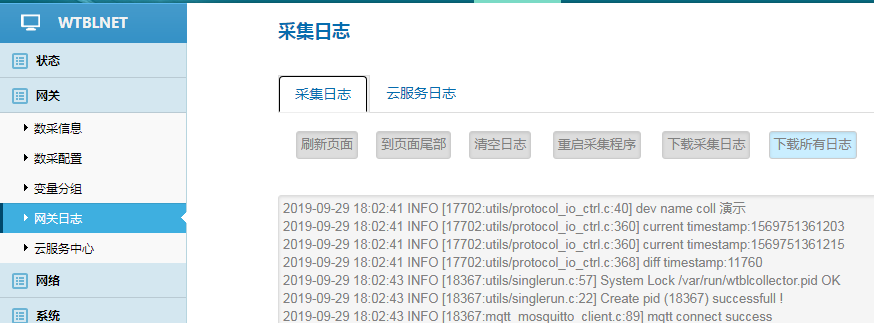 采集日志用于診斷網(wǎng)關(guān)采集現(xiàn)場設(shè)備的通信情況和報文收發(fā)情況、以及遠程配置交互等情況。