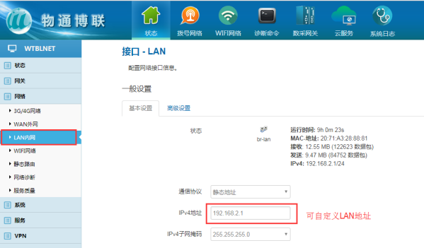 網(wǎng)關(guān)WEB管理界面默認地址:http://192.168.2.1/