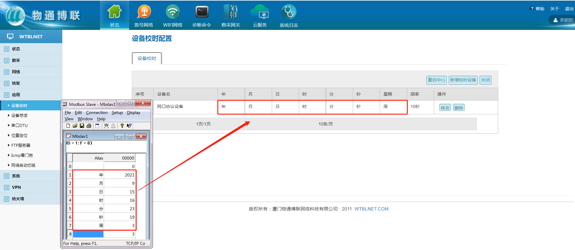 注:截圖使用Modbus Slave軟件模擬需要校時的設(shè)備。