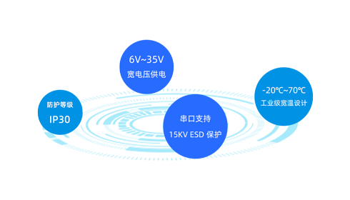 支持6V~35V寬電壓供電,-20℃~70℃工業級寬溫設計,適應更多對供電要求和溫度要求的應用現場。具備有IO控制功能,使得遠程控制輕松實現。 自帶RS-232/RS-485串口無線數據終端通信功能,更符合工業客戶需求。同時還具備如下特性: