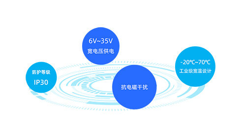 支持6V~35V寬電壓供電,-20℃~70℃工業級寬溫設計,抗電磁干擾,適應更多對供電要求和溫度要求的應用現場。